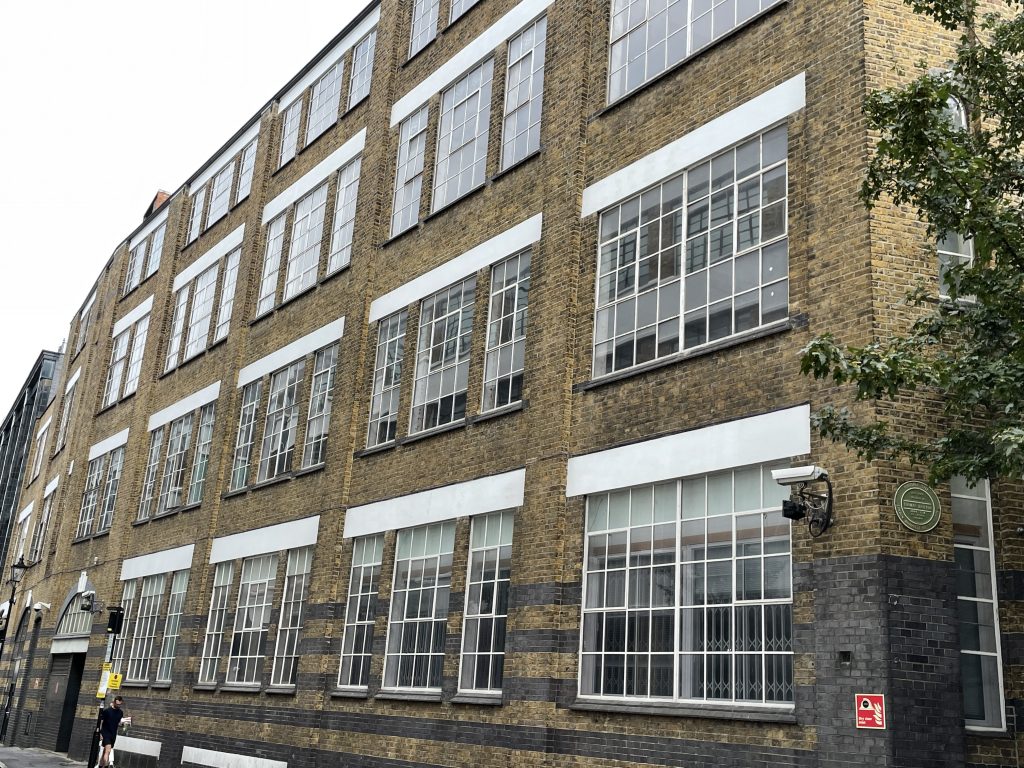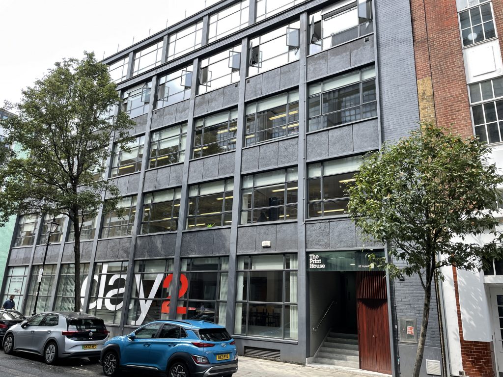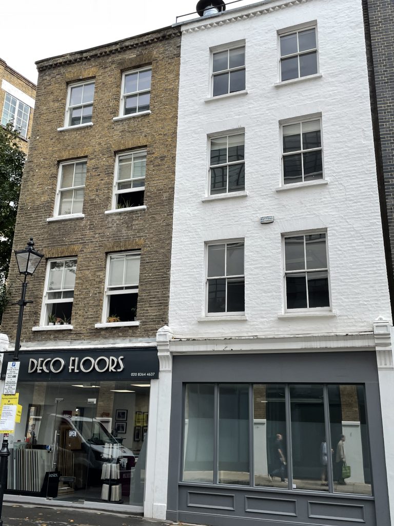 The Print House, No. 32 Aylesbury Street, was built nearly 30 years later (1963) to designs by the same firm of architects who designed No. 30 – Fuller, Hall & Foulsham. The reinforced-concrete frame is filled with brick and aggregate panels.